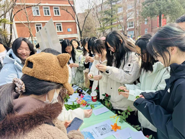 活动设计了“专业导学+趣味闯关+创意实践”的多元形式,三个环节层层递进,寓教于乐。在“北农春日导学”环节,植物健康研究院的专业教师带领同学们漫步校园,以校园植物为鲜活教材,现场讲解植物生长特性、养护技巧及常见病害防治知识,使专业教学从课堂延伸至实景。在“感受双向‘植’愈,智慧闯关”环节,围绕植物保护、环保常识等设置的趣味问答吸引了同学们踊跃参与,在互动中巩固了知识,深化了对“爱绿、护绿、养绿”的理解。在“指尖生花,定格春日”创意实践环节,同学们亲手制作扭扭棒花朵,并在便利贴上书写对学校和绿色未来的美好祝福,共同拼组成“I love BUA”图案,温情定格了北农学子对校园的深情与对生态的向往。