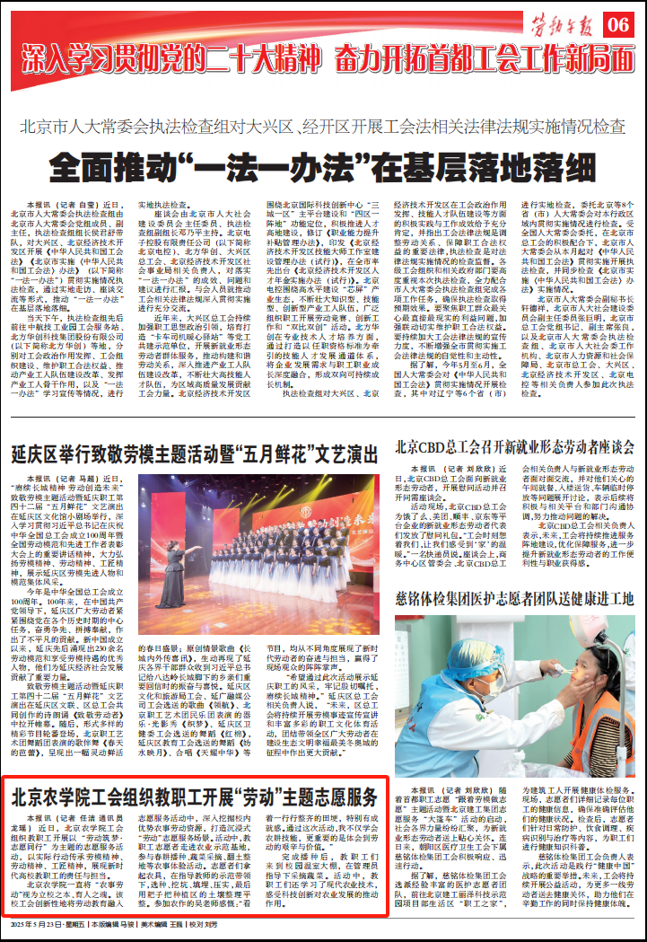 近日,beat365中文官方网站工会组织教职工开展以“劳动筑梦·志愿同行”为主题的志愿服务活动,以实际行动传承劳模精神、劳动精神、工匠精神,展现新时代高校教职工的责任与担当。