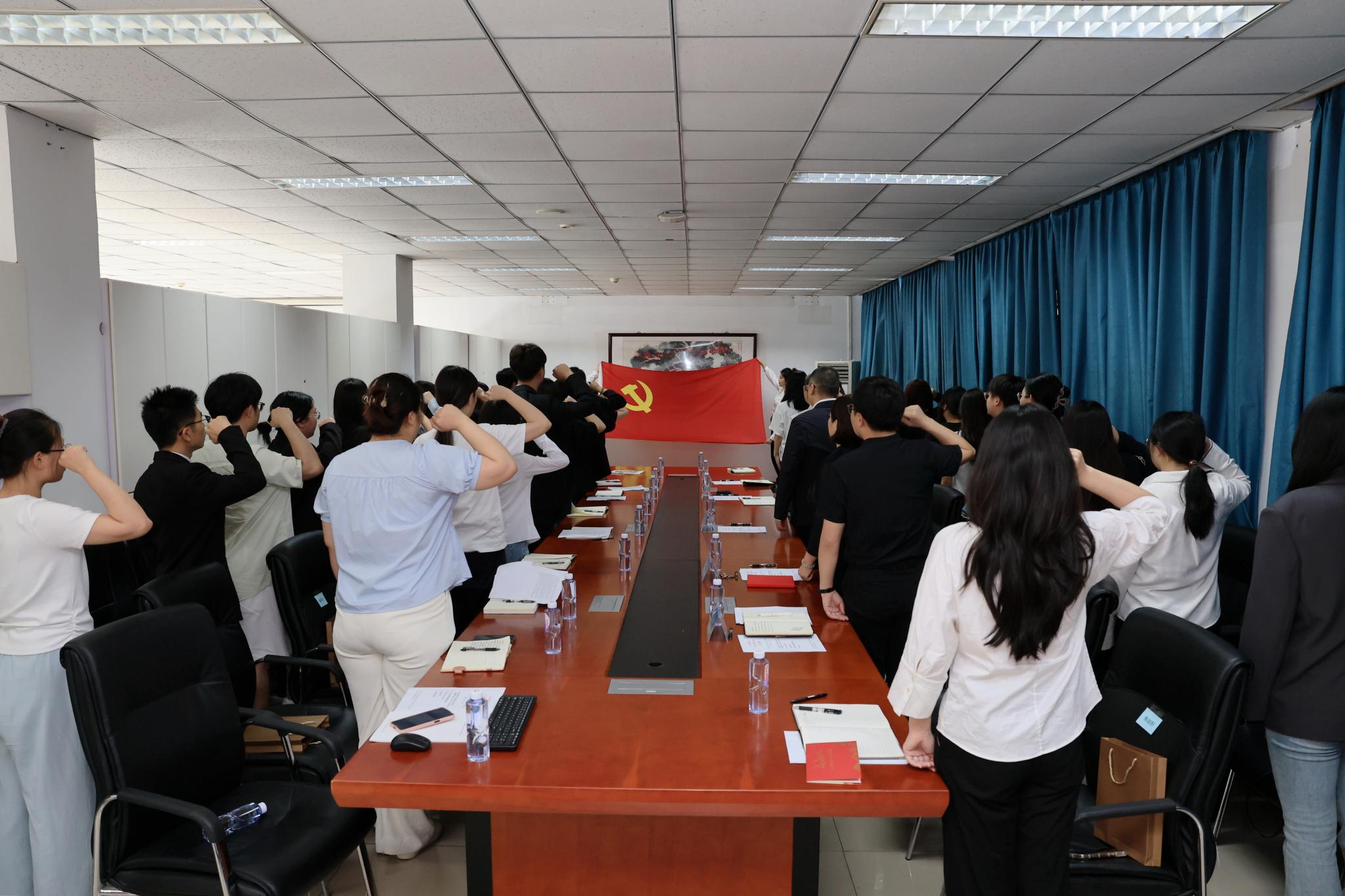 近期,学院党委组织学生党员代表开展“重温入党誓词”仪式。面对鲜红的党旗,全体党员右手握拳,神情肃穆,师生党员以铿锵有力的声音重温入党誓词。学生党员解展镔表示,作为新时代青年党员,我们要以誓词为行动指南,将初心使命融入学习与实践。