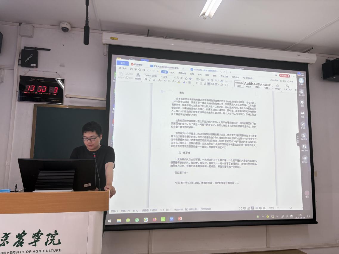 2025年6月18日,园林学院第86期“月读一本好书”活动在教A 215顺利举行,本期的主题是“花开半夏,书香满园”。夏日炽热,柳丝轻舞,六月的阳光正以最热烈的笔触,在树荫间勾勒着翠绿的篇章。我们相聚在这盛夏炎炎的时光里,愿每位书友都能寻得内心的清凉之地。活动由园林学院研究生会学术部王娅力主持,园林学院2024级研究生积极参与,大家共品书韵,在炎炎夏日中一同收获知识与乐趣,为本学年最后一次读书分享会画上圆满的句号。