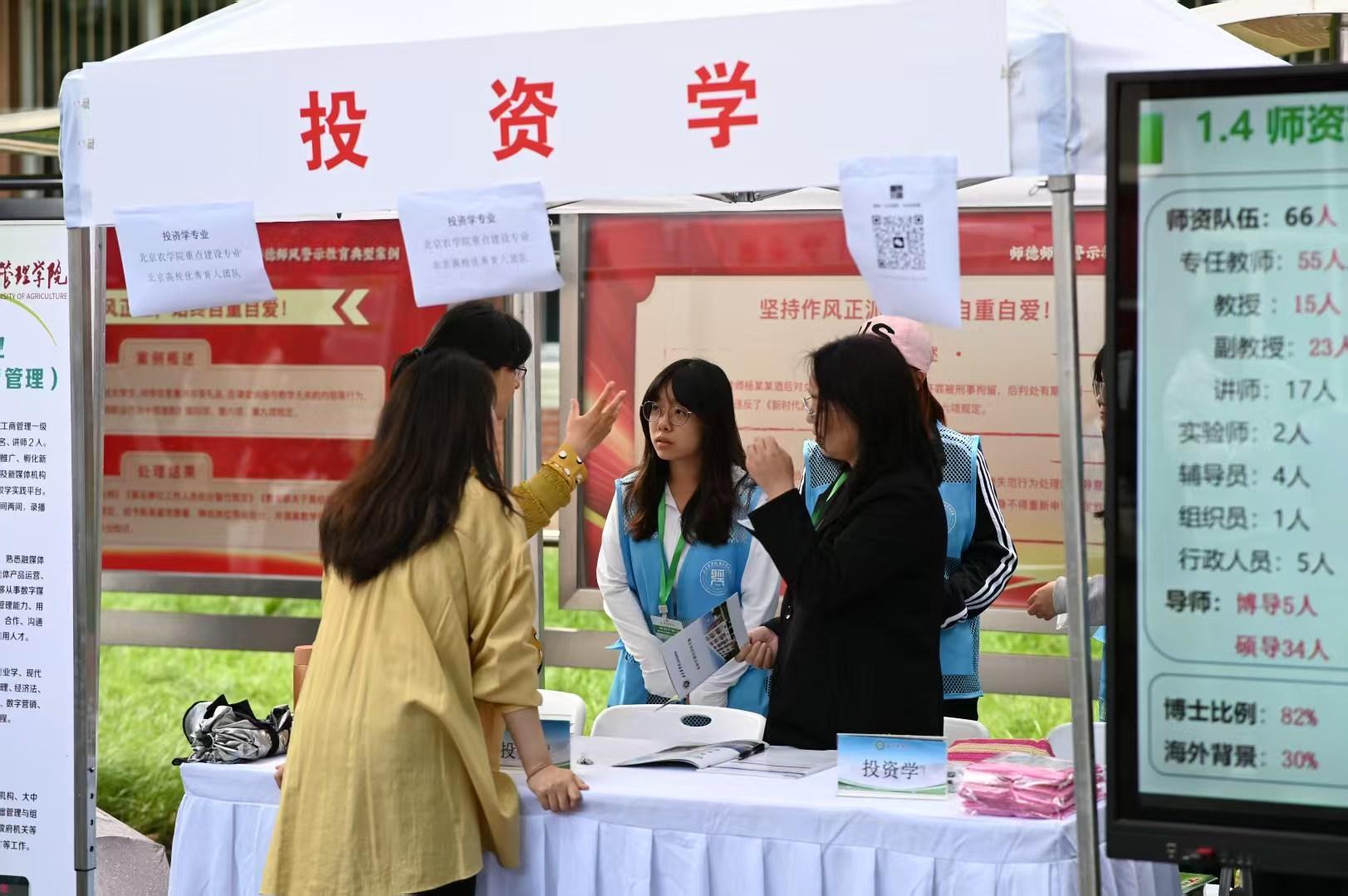 从校门到展区,那一抹“北农蓝”成为校园里最亮丽的风景线,他们在各自的岗位上用专业与耐心解答着关于学科专业特色、科研实践成果、校园设施保障等方面的问题;回应着家长与考生们心中的疑惑与关切;展现着北农青年志愿者的专业素养和责任担当,获得了考生、家长及参会高校的一致好评。
