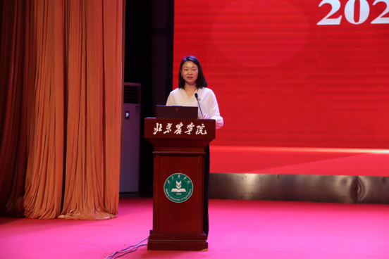 最后,学院党委书记李金苹发表总结讲话。她首先对2025级新生的到来表示热烈欢迎,随后从学院发展历程、学科优势、育人理念等方面进行了深入阐述,希望新生们能锚定目标、脚踏实地,在专业学习中践行绿色使命,同时积极参与学院建设,在北农园林这个大家庭中收获知识、友谊与成长。