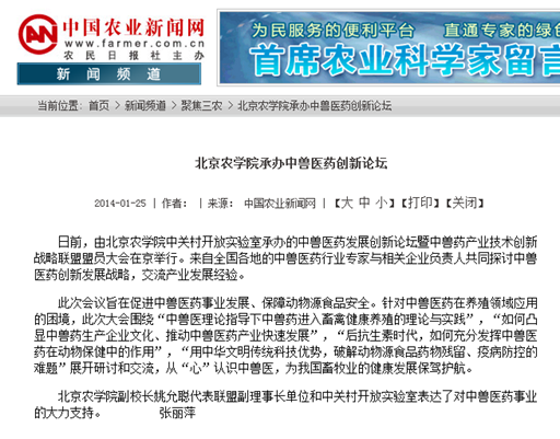 beat365中文官方网站副校长姚允聪代表联盟副理事长单位和中关村开放实验室表达了对中兽医药事业的大力支持。 (张丽萍)