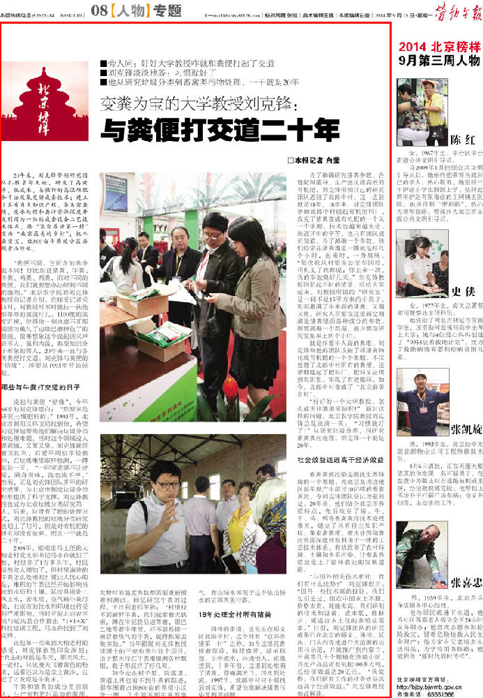 畜禽粪便污染是困扰世界环境的一个难题,光北京及周边地区每年就产生超过10亿吨的畜禽粪污。令刘克锋团队引以为豪的是,20年来,他们结合北京市养殖特点,先后攻克了猪、牛、羊、鸡、鸭等畜禽粪污技术处理难关,建立了具有自主知识产权、集畜禽粪便、废水处理和粪污资源深度开发利用于一体的工艺技术体系,有效改善了农村环境、土壤和水系污染,让畜禽养殖业走上了循环农业的发展道路。