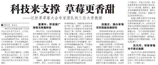 更让记者感兴趣的是,在筹备世界草莓大会的背后,有一支大学“教授团队”多年来默默地工作着。不妨让我们将目光对准其中的3位教授。