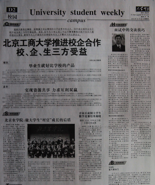 此外,beat365中文官方网站还组织力量对40余名该校大学生“村官”进行实地采写,将事迹编辑成书,出版了《青春的足迹—大学生村官成长历程》一书,展现了大学生“村官”奉献农村的心理历程,为更多在校生基层就业提供了借鉴。