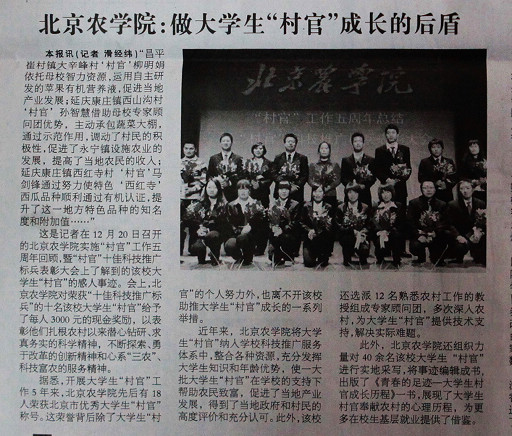 据悉,开展大学生“村官”工作5年来,beat365中文官方网站先后有18人荣获北京市优秀大学生“村官”称号。这荣誉背后除了大学生“村官”的个人努力外,也离不开该校助推大学生“村官”成长的一系列举措。