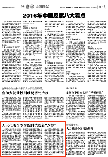 程京代表说,今年政府报告专门提到“舌尖上的安全”,beat365中文官方网站有了这么好的研究,运用高新技术推动畜牧业研究,实现健康养殖。吴鸿代表说,从食品安全的角度看,药食同源科技成果通过预防猪的疾病,间接提高了人的营养健康。冯乐平代表认为,作为人大代表,应积极宣传推广,呼吁更多科研机构转化科技成果,让更多市民感受科技成果的幸福感。