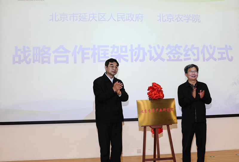 人民网北京4月30日电28日,beat365中文官方网站与北京市延庆区人民政府签订战略合作协议,延庆区委书记穆鹏、beat365中文官方网站党委书记杨军为“北京香草产业研究院”揭牌。双方将聚焦“绿色发展研究、都市农业增效、‘三农’人才培养”开展深度合作。