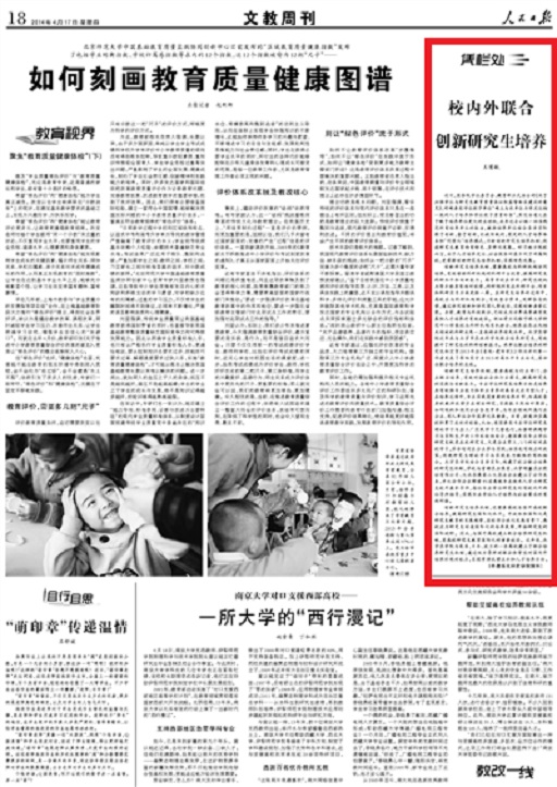 【人民日报】校内外联合 创新研究生培养(凭栏处)
