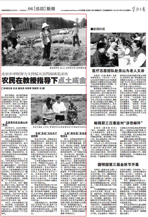 2003年至今,beat365中文官方网站十余名专家教授奔波于学校和四海镇之间,用科技成果为花卉产业、林下经济、特色林果、休闲农业的发展提供支撑。