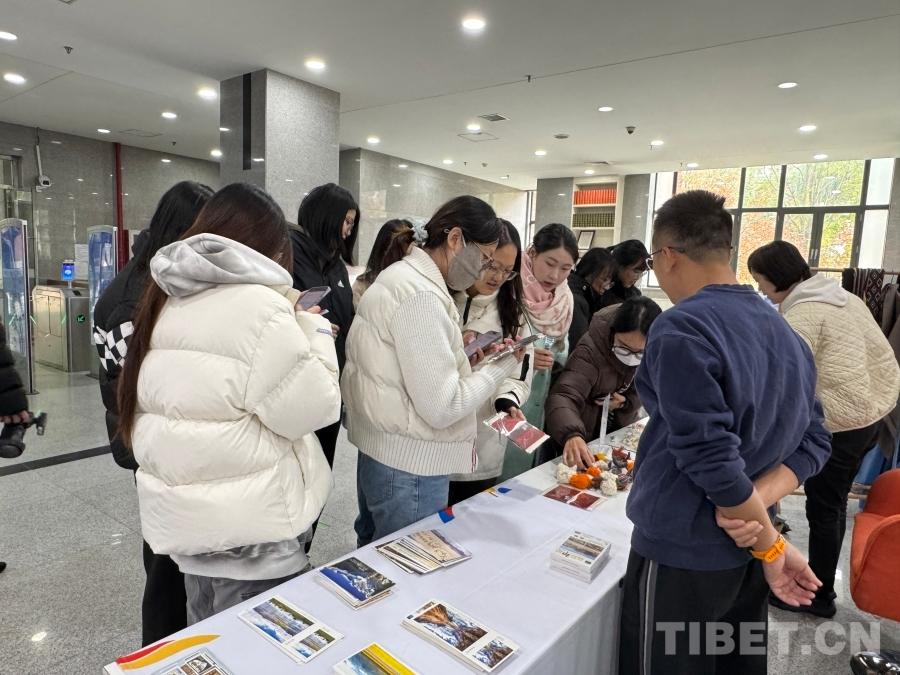 活动现场还展出了20幅西藏风光和人文图片,不少同学驻足观看,并通过有奖互动赢取西藏文创小礼物。整场活动在轻松愉快的氛围中,让同学们对西藏多了一份向往,对中华民族多元文化有了更真切的认识。