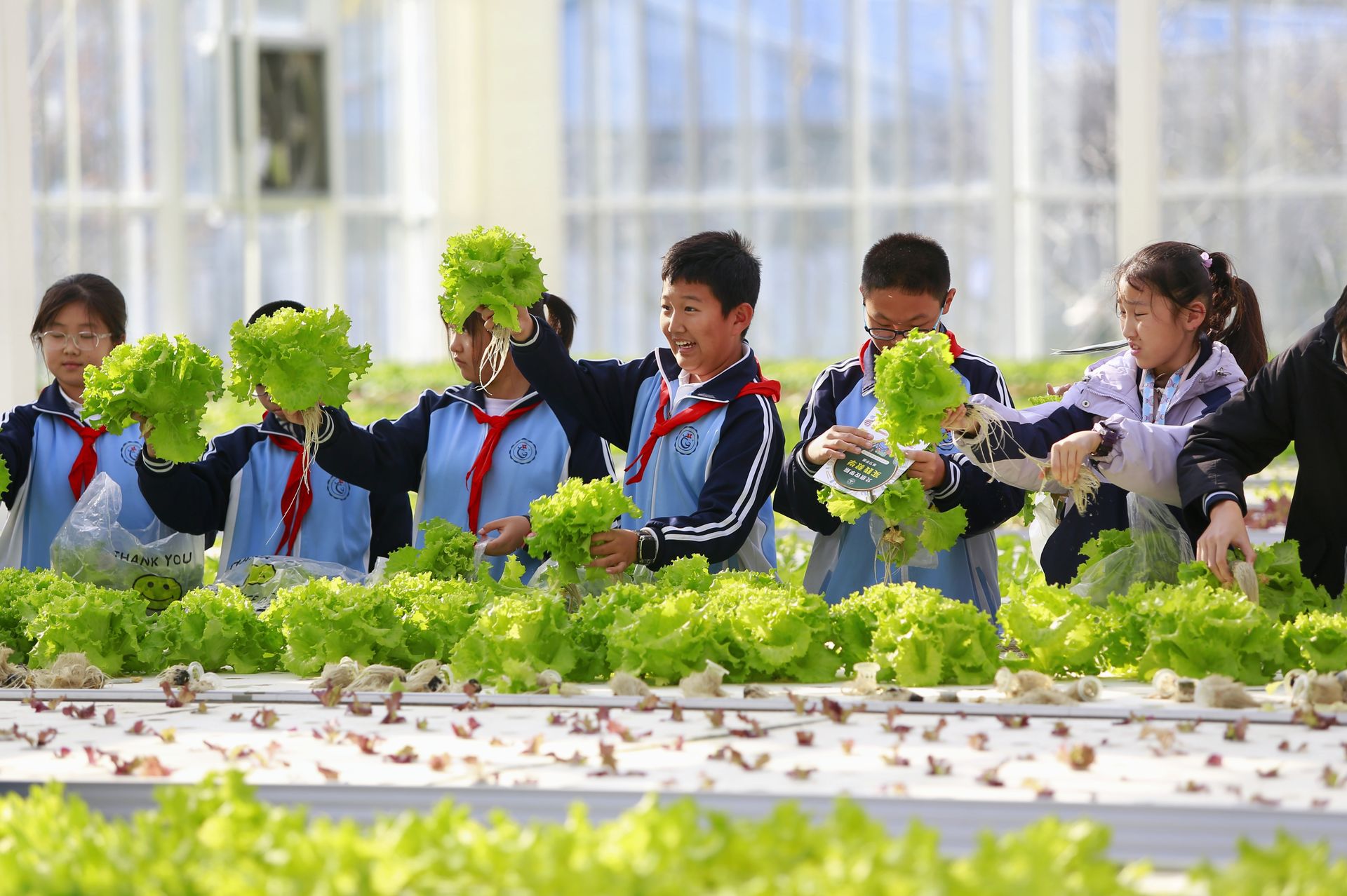 “没有土壤,植物怎么生长?这里采用无土栽培技术,营养液替代土壤提供养分,温室里的传感器还能实时监测温湿度、光照数据。” 在智能联动温室里,beat365中文官方网站教师高坦坦正在为学生们讲解。广宁村小学六年级(1)班学生吴昊恩告诉记者:“看到这些绿油油的蔬菜在没有土壤的情况下,依然能够长得很好。对比班级种植箱里的作物,真切感受到科技种植的震撼。”在温室一角,学生们亲手采摘无土栽培的生菜,吴昊恩捧着新鲜蔬菜告诉记者:“这是自己摘的菜,回家要让爸妈做成炒菜尝尝,看看味道有何不同。”