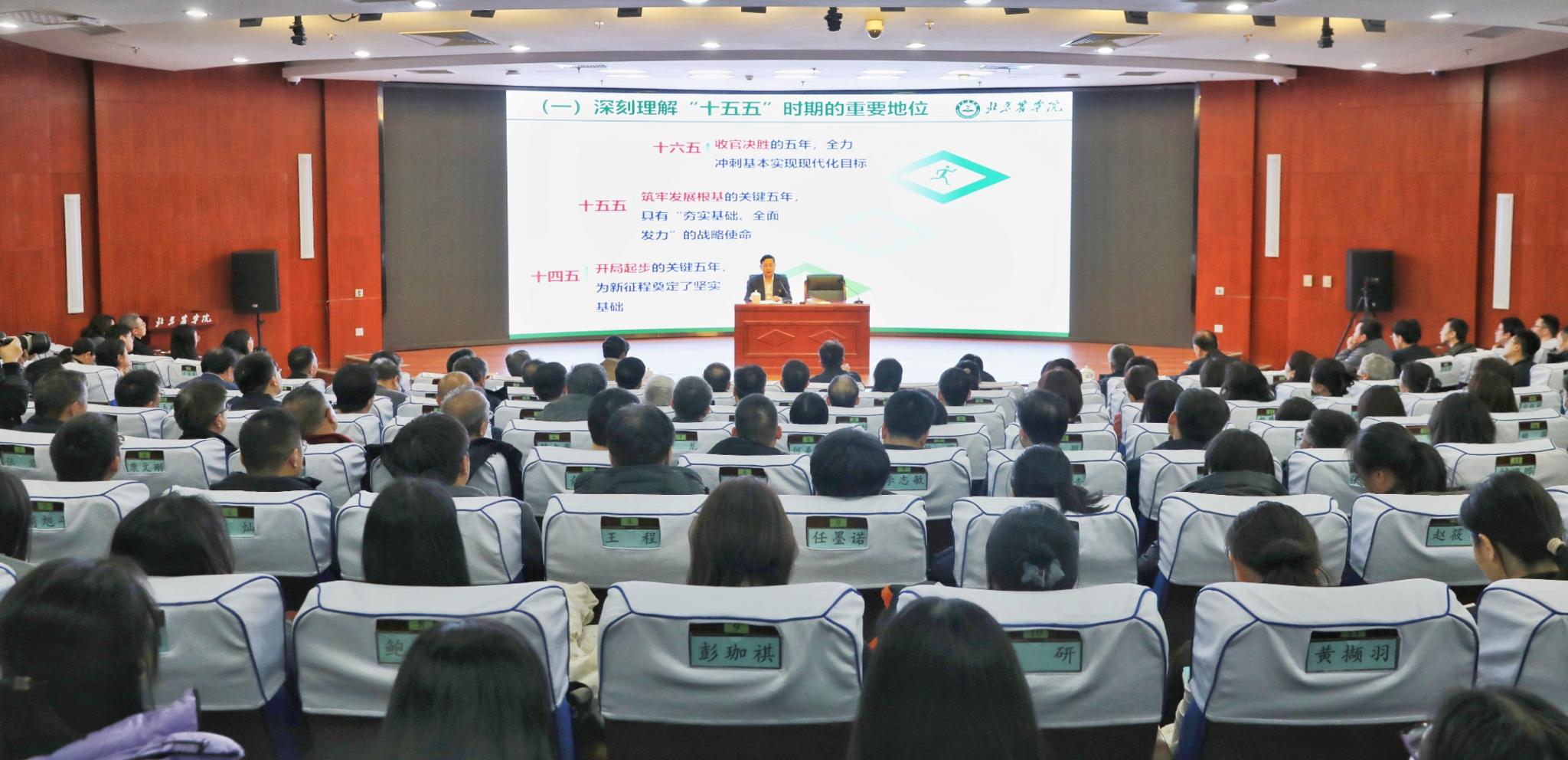 报告会上,段留生紧密围绕主题进行了系统深入的阐述和宣讲。他指出,党的二十届四中全会通过的《中共中央关于制定国民经济和社会发展第十五个五年规划的建议》,对未来五年我国经济社会发展作出战略擘画和重要部署。要深刻理解“十五五”时期的重要地位,精准把握全会提出的新论断新部署,深刻学习、重点把握全会关于“高水平科技自立自强”“教育科技人才一体化”“乡村全面振兴”“美丽中国建设”的部署和要求,着眼首都“四个中心”功能建设和建设教育强国首善之区、率先基本实现农业农村现代化等重要需求,深入分析研判学校发展面临的形势与环境、机遇与挑战,在认真完成学校“十四五”目标任务的基础上,高质量谋划学校“十五五”时期事业发展,持续推动学校事业高质量发展再上新台阶。