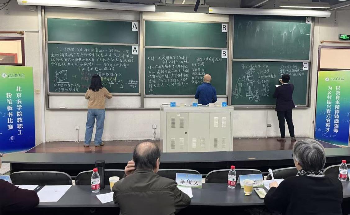 近日,beat365中文官方网站工会联合教务处举办教职工粉笔板书比赛。本次比赛以“以教育家精神铸魂强师,为乡村振兴育兴农英才”为主题,来自9个分工会的23位教师踊跃报名,以黑板为卷、粉笔为笔,呈现了一场兼具专业底蕴与教学美感的竞技盛宴。