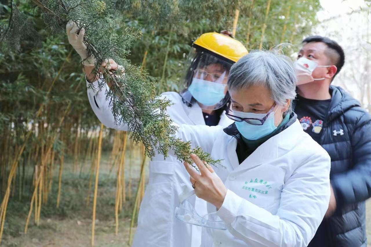 花粉抑制剂“圆柏抑花1号”则从花粉产生的源头下手,在雄株小孢子叶球形成的关键期进行抑制,减少雄球花的数量。“和花粉固定剂的使用时间不同,抑制剂在前一年的5月施用,第二年春天能看到效果。”邢宇介绍,这项科研成果目前已完成中试,可将雄球花数量减少到使用前的10%。