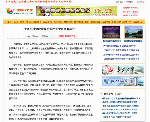 宣讲会上,北京市毕业生就业服务中心副主任古尊师向大家介绍了北京市2013年选聘应届毕业生到村任职的相关政策,并就同学们关心的村官选聘办法、福利待遇、培训机制、后续发展等问题进行详细的讲解。
