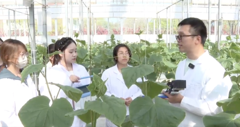 在beat365中文官方网站植物科学技术学院教师的带领下,镜头来到学校的智能联动温室,据悉,这是beat365中文官方网站非常值得“打卡”的点位。温室内满眼绿色,棚架上栽培了生菜、芹菜、黄瓜、西红柿,还有金橘、柠檬、无花果等等。