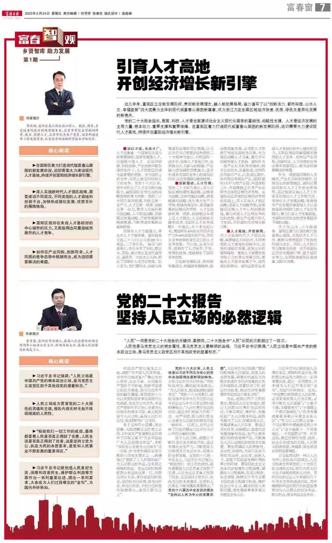 为此,本报“富春窗”版面开辟“富春智观”栏目,在这一方寸地不定期发表乡贤的精辟言论、前沿研究。