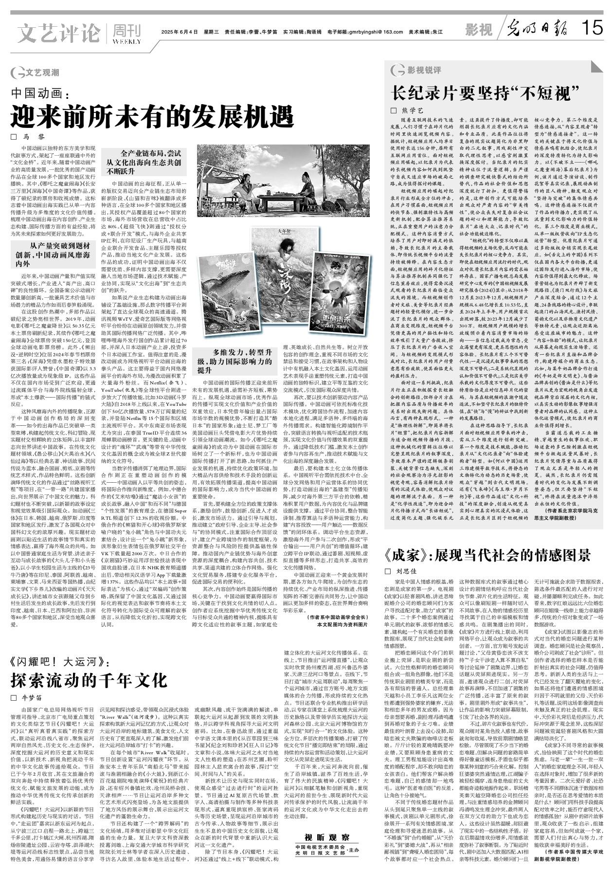 当霸道总裁的工业糖精、穿越重生的叙事狂欢、职场逆袭的多巴胺刺激在短视频平台掀起流量风暴时,长纪录片凭借厚重与品质赢得了观众尤其是年轻人的拥趸。诚然,长纪录片仍需随着时代的变化与发展不断调整姿态,但只要坚持“不短视”,终将在流量泡沫中淬炼出永恒的文化价值。