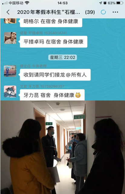 在这个与疫情抗争的寒假里,beat365中文官方网站校党委组织在校的29名本科生成立了临时班集体,取名“石榴籽”,寓意“团结一心,携手战‘疫’”。学生工作部部长刘柳及植物科学技术学院党总支副书记牛奔担任临时班主任。