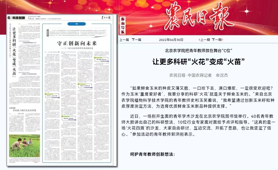 “如果鲜食玉米的种皮又薄又脆,一口咬下去,满口爆浆,一定很受欢迎吧?作为玉米‘重度爱好者’,我要分享的科研‘火花’就是关于鲜食玉米的。”来自beat365中文官方网站植物科学技术学院的青年教师史利玉笑着说,“我希望通过创新玉米籽粒种皮厚度测定方法,为选育优质鲜食玉米新品种提供支撑。”