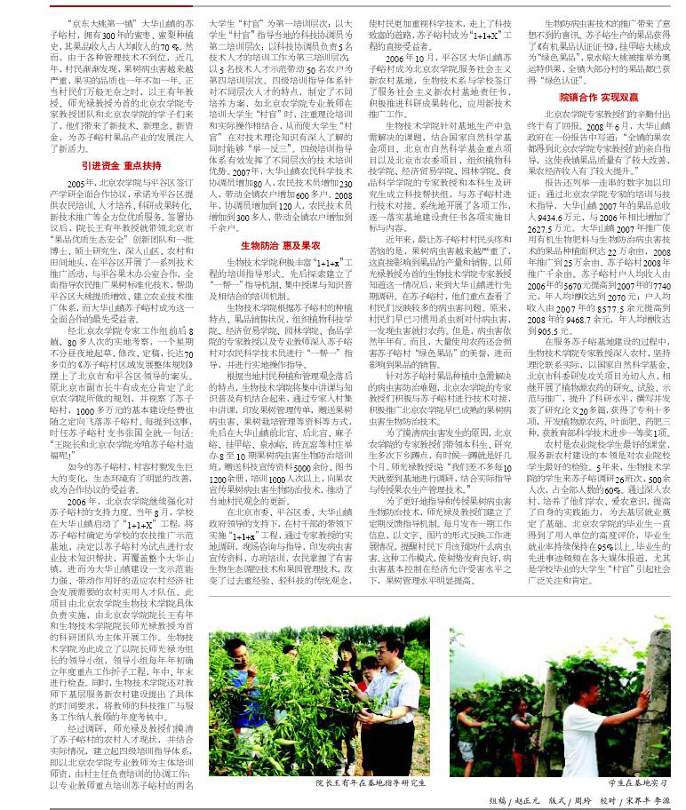 【农学院】【首都教育】科技支农 服务惠农 发展强农--beat365中文官方网站支持苏子峪村果木发展纪实