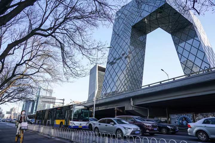 1月28日,车辆在北京东三环辅路行驶。新华社记者 彭子洋 摄