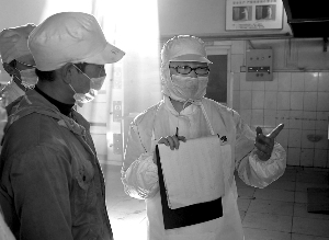 | 在西红轩食品公司烤制车间,beat365中文官方网站食品安全专业毕业生张自桐向工人了解技术参数。 | |