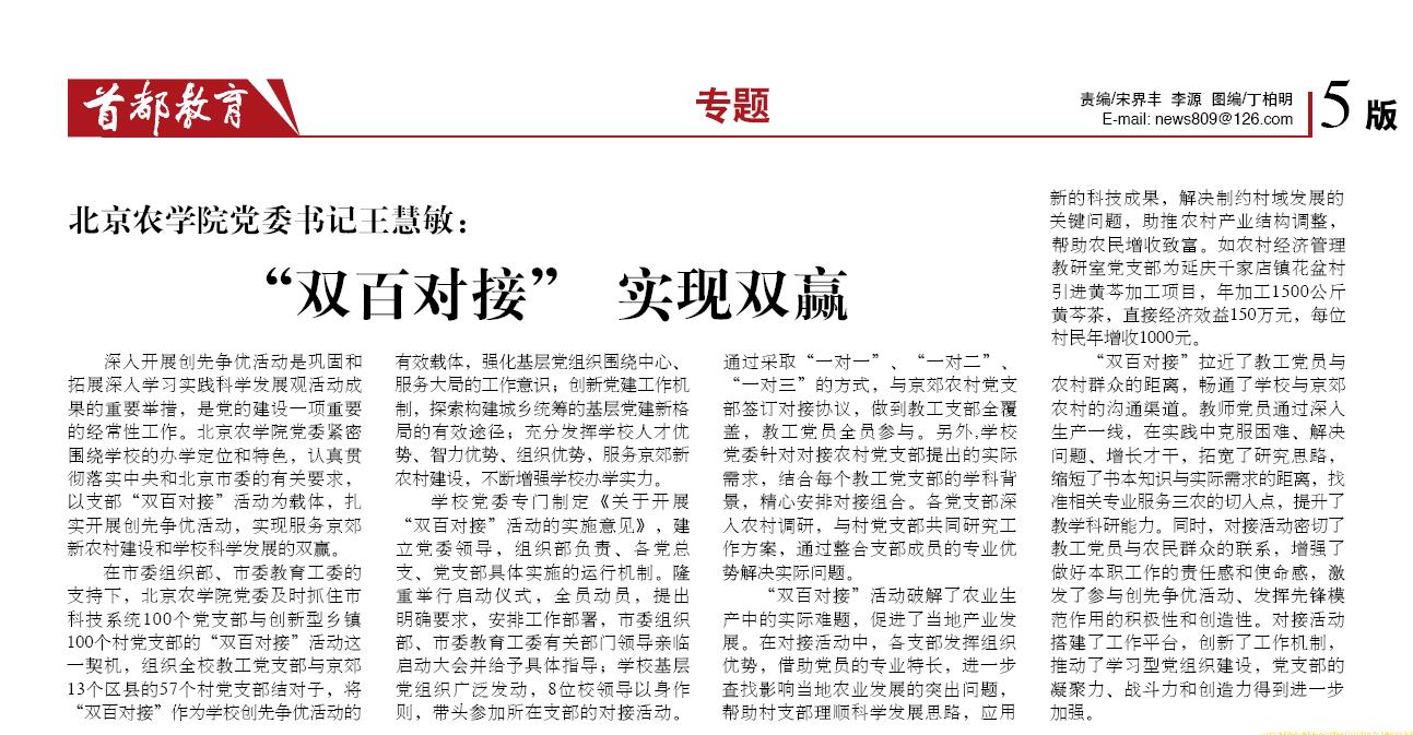 【农学院】【首都教育】beat365中文官方网站党委书记王慧敏:“双百对接”实现双赢