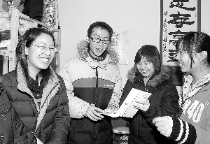 1月16日,来自四川地震灾区的beat365中文官方网站学生赵颖、马云麒和周琳(从左至右)获得学校赠送的返乡车票及千元补助金。自入学之初,beat365中文官方网站就向他们发放了助学金,全部免除4年学费,还为他们提供了勤工助学岗位。刘铁军 本报记者 张学军 摄(2009年1月17日)