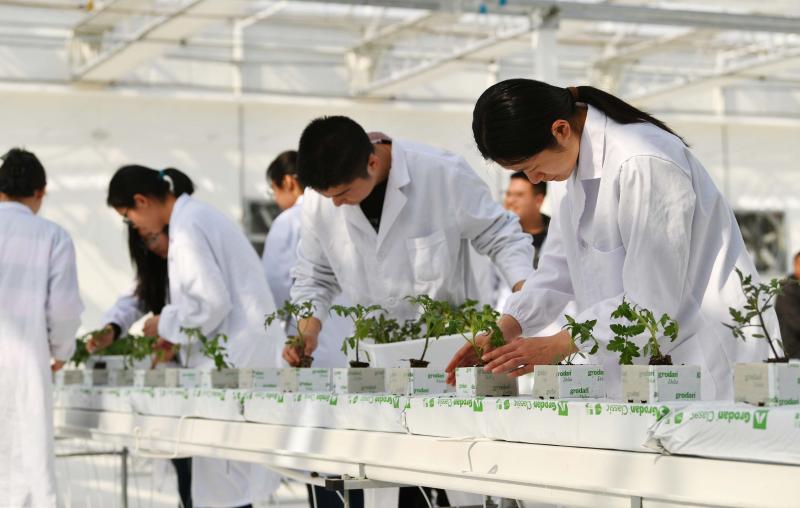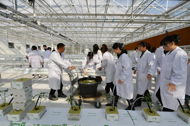 在老师示范后,同学们开始从番茄育苗穴盘里一棵棵地取出幼苗,再逐一定植进浸泡过的岩棉穴块中,并认真听老师讲解用岩棉代替土壤栽培的优点:克服土壤连作障碍、精准施肥、提高冬季根系温度、智能调控种植环境提高果实产量和品质、种植环境洁净……“我们正处于一个农业科技在大幅进步的时代,这样的温室大棚能不仅让我们学习到农业技能,还能接触到先进技术和观念。”上完课的大三学生吴祥钰告诉北青报记者,毕业后她的理想是服务乡村振兴,她希望能把这样的高科技应用到京郊农村去,用先进技术促进农民增收。