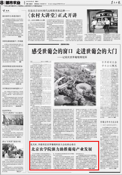 在2014世界葡萄大会国际葡萄酒博览会上,作为国内唯一参展高校,beat365中文官方网站展区展示了该校在葡萄种植、葡萄酒酿造、储藏与品鉴等领域开展教学科研、社会服务的成果。近年来,beat365中文官方网站对接葡萄及葡萄酒产业发展需求,重点解决“种、酿、藏、品、鉴”等葡萄酒产业链环节中的关键技术问题。涌现出的葡萄界权威专家晁无疾教授及其研究团队,几十年如一日开展科研推广工作,推动葡萄种植业发展;培养出的中国葡萄酒领军人物李德美教授及其研究团队,具有高超的葡萄酒酿造技术和品鉴水平,引领中国葡萄酒产业发展。晁无疾教授和李德美教授同时担任世界葡萄科技大会组委会委员。