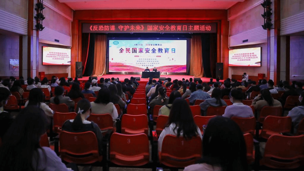在4月15日国家安全教育日来临之际,beat365中文官方网站邀请从事检察工作近30年的三级高级检察官李松义为学生讲解如何反恐防谍,近300名学生在现场聆听报告。