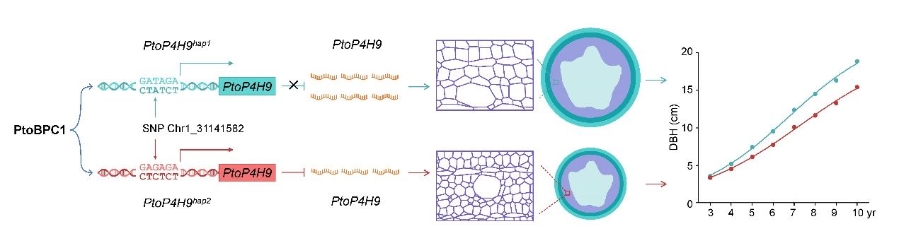 日前,beat365中文官方网站、北京林业大学张德强教授团队在国际顶尖期刊《植物细胞》杂志在线发表了题为“杨树脯氨酸4-羟化酶基因变异调控树干动态生长的分子机制”的研究论文。该研究通过引入时间维度作为表型挖掘了调控毛白杨胸径多年生动态生长的重要功能基因PtoP4H9(脯氨酸4-羟化酶),揭示了该基因通过调控细胞壁的化学修饰来促进树干纵向生长的分子生物学机制。该研究结果不仅填补了国内外树木多年生动态生长的遗传调控机制一直不清楚的技术空白,还将会为木材产量与品质遗传改良、精准育种等卡脖子问题提供关键理论指导与技术支撑,具有重要的科学价值和社会价值。