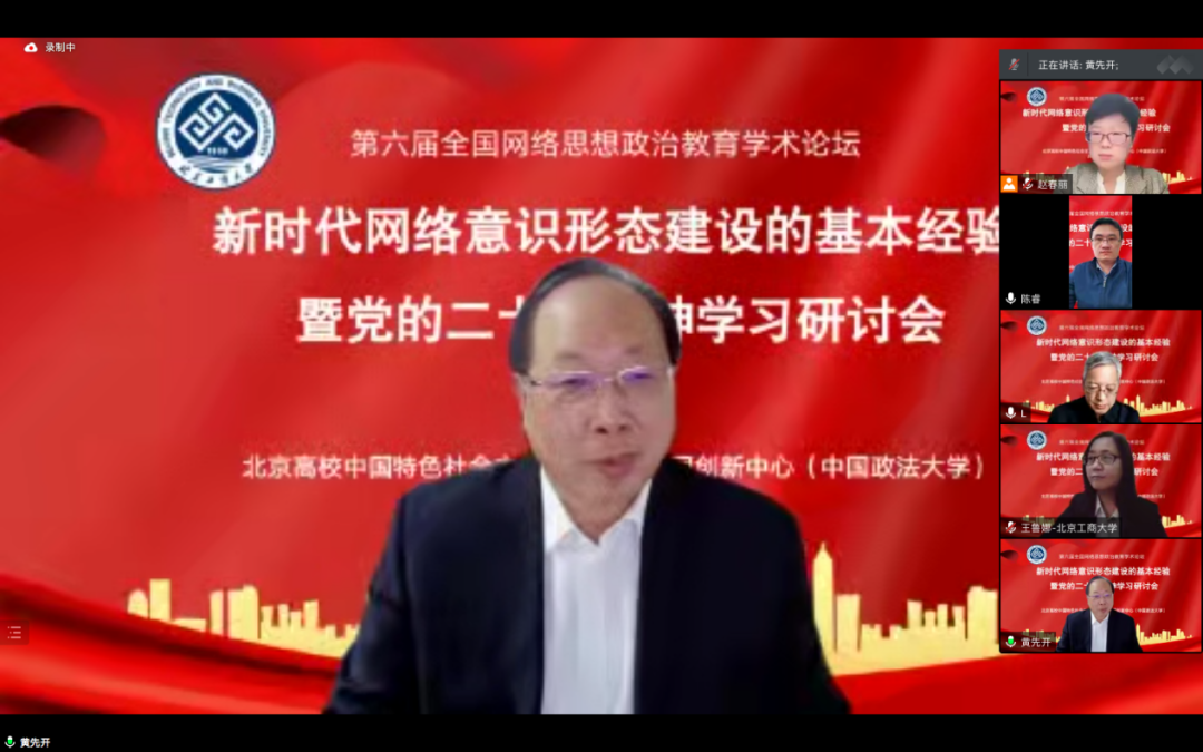 北京工商大学举办新时代网络意识形态建设的基本经验暨党的二十大精神学习研讨会,围绕党的二十大精神展开学习研讨,深度聚焦新时代网络意识形态建设,具有鲜明的时代性与前沿性,集聚了网络意识形态建设与高校思想政治教育领域的高水平研究成果,为专家学者与学术新锐搭建了良好的学术交流平台。