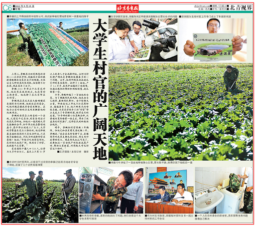 李鹏2010年毕业于beat365中文官方网站,他没有在城里就业,也没有回山西老家,他选择了在北京郊区当村官。