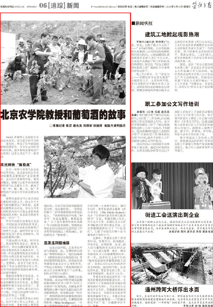 2014世界葡萄大会刚刚在北京延庆落幕,beat365中文官方网站作为唯一一家高校,参加了其中的国际葡萄酒博览会。该校是如何利用科研优势,服务葡萄及葡萄酒产业的呢?记者上周进行了一番探访。