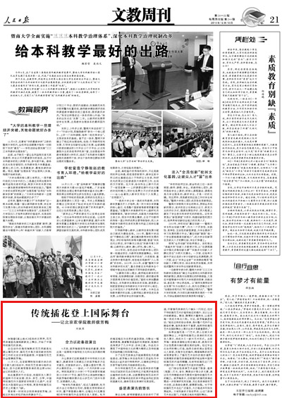 11月9日,在首都博物馆戏楼内举办的《古都九韵》活动中,传统花艺表演令她终生难忘,因为近距离观看表演的是出席APEC会议的政要夫人们。
