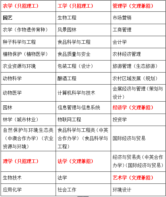 三是外培计划专业由园艺和动物医学专业调整为园艺和动物科学专业。其中园艺专业是与英国皇家农业大学合作。动物科学专业与美国州立波莫纳理工大学合作。培养模式均为1+2+1,第二、三学年去国外学习。在提前批B段报考。