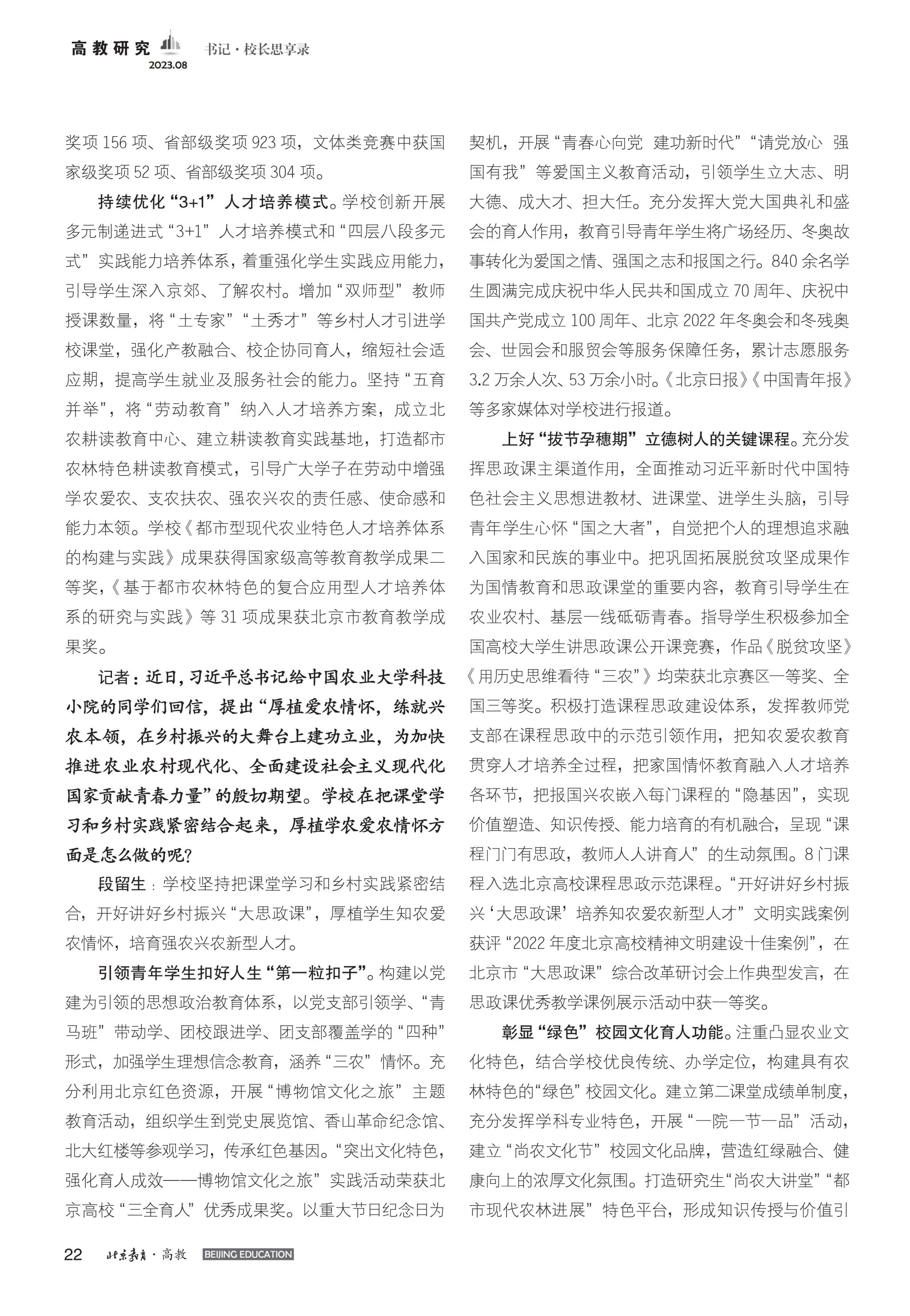 【北京教育】厚植爱农情怀 练就兴农本领 着力培养高素质知农爱农新型人才