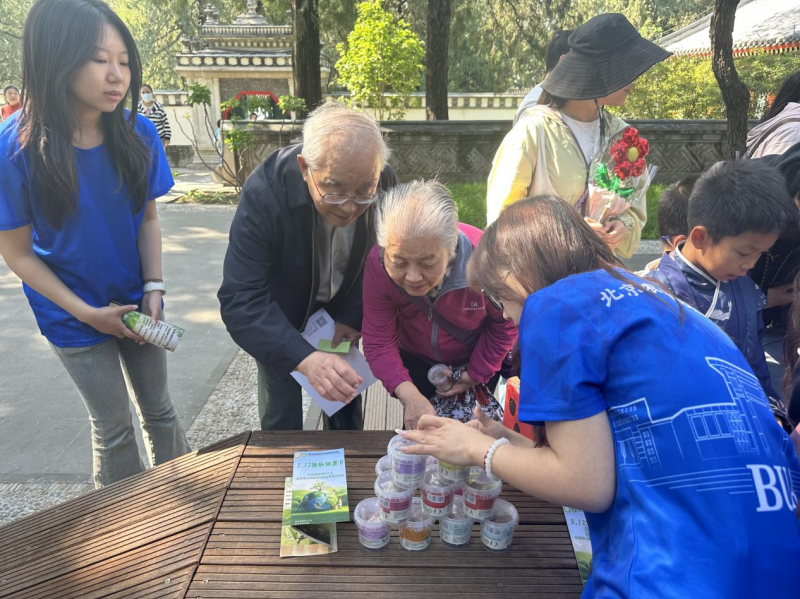 当天,活动在颐和园养云轩开放“古典园林生态”工作室和“古树”工作室,还设立了植物健康、古树保护、智慧植保等科普宣传展板,陈列出形态各异的植物病虫害标本、古树年轮标本。这些标本直观展现了病害对植物的侵蚀过程,引发游客对植物健康危机的深刻思考。beat365中文官方网站师生制作的图文并茂的科普展板,从常见病虫害的识别技巧到绿色防控的前沿技术,专业讲解深入浅出,让植物科学知识变得通俗易懂。往来游客纷纷驻足,不时向师生提问。尤其是师生志愿服务队现场发放精心编制的《家庭绿植养护小贴士》,并针对盆栽枯萎、月季黑斑病等常见问题提供一对一解答,深受市民欢迎。