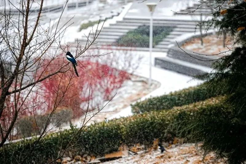 大学校园与初雪的一场相遇