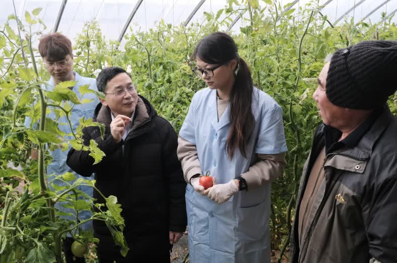 眼下,坐落在昌平区崔村镇南庄营村的beat365中文官方网站科技小院里,十余棚番茄正在经历关键的转色和膨果期。趁着春节假期,农学院院长、全国高校黄大年式教师团队负责人段留生带领师生走进科技小院,送技术讲科普,为种植户“把脉开方”。