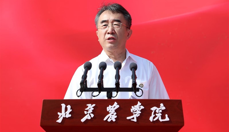 赵锋代表学校向2024级新生表示热烈欢迎和衷心祝贺,勉励同学们坚定理想信念,坚定不移听党话、跟党走,牢记当代青年的使命和责任,与祖国发展和新时代首都发展同向同行、同频共振;立大志、明大德、成大才、担大任,勤于思考、善于学习、精于钻研、敢于创新,用自己的不懈努力和奋斗,谱写无悔的青春华章;厚植爱农情怀、练就兴农本领,立志做有理想、敢担当、能吃苦、肯奋斗的新时代好青年,在乡村振兴的大舞台上建功立业,努力成为堪当民族复兴重任的时代新人。