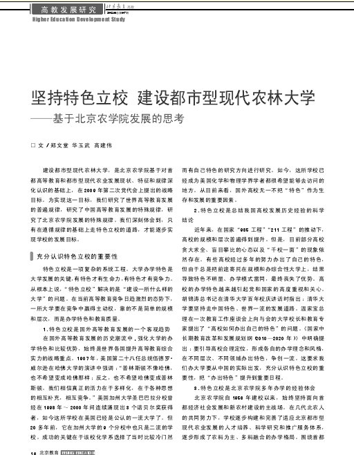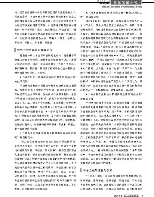 特色是一所大学生存和发展的生命力,更是基于不断变化的现实和环境,始终不断深化自身有区别、差异化特征的过程。当前,中央和首都对“三农”工作的一系列新举措、新部署,都促使学校对特色立校的新情况、新问题进行再认识、再定位。