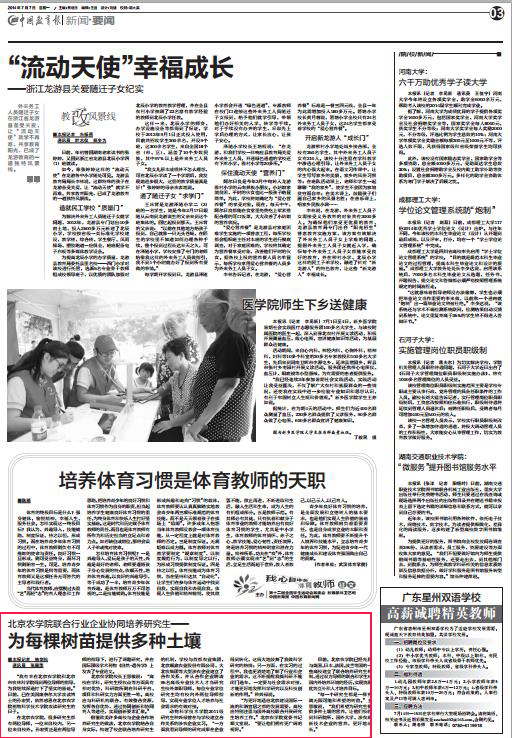 借鉴欧美许多高校与企业合作培养研究生的做法,beat365中文官方网站结合自身实际,构建了校企联合培养研究生的机制,学校与首都农业集团、北京顺鑫农业股份有限公司、大北农集团等大型涉农企业建立了合作关系,并从合作企业聘请95名高级专业技术人才当研究生校外兼职导师,每位专业学位研究生均有校内外两位导师指导,实现专业学位人才培养与社会需求的有效对接。