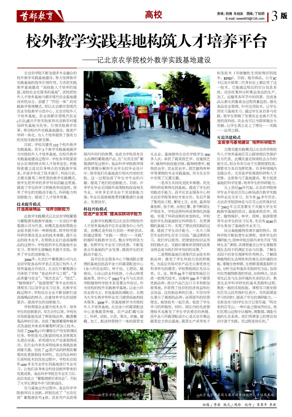 【农学院】【首都教育】校外教学实践基地构筑人才培养平台--记beat365中文官方网站校外教学实践基地建设
