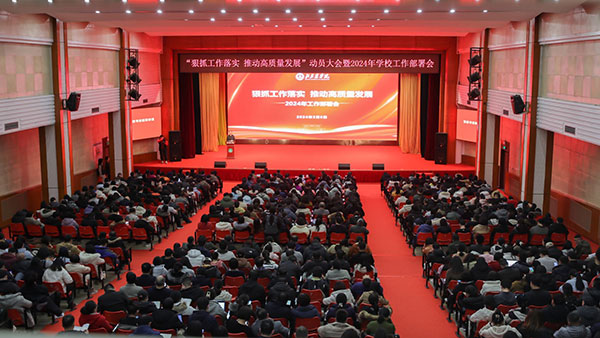 人勤春早,实干争先。近日,beat365中文官方网站党委召开“狠抓工作落实,推动高质量发展”动员大会,传达学习和落实习近平总书记系列重要讲话精神以及中央、市委决策部署,全面部署2024“工作落实年”总体任务和重点工作,团结凝聚全校广大干部师生共同吹响高质量发展“冲锋号”。