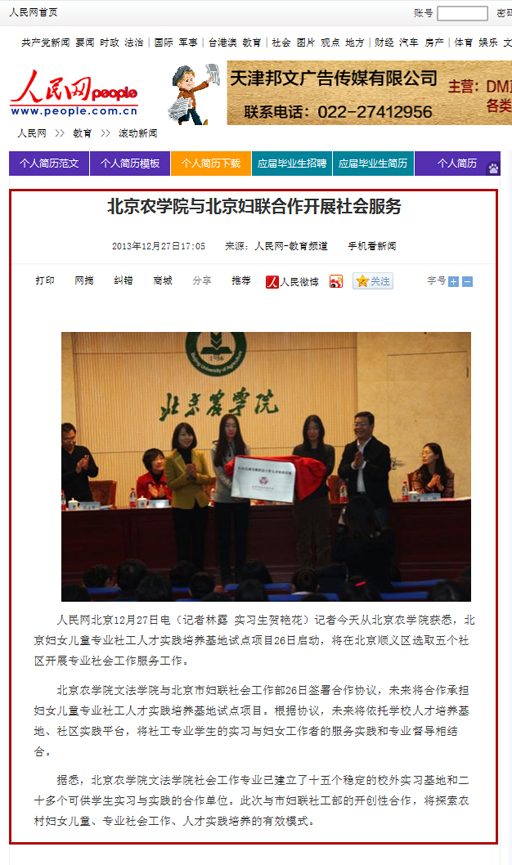 人民网北京12月27日电(记者林露 实习生贺艳花)记者今天从beat365中文官方网站获悉,北京妇女儿童专业社工人才实践培养基地试点项目26日启动,将在北京顺义区选取五个社区开展专业社会工作服务工作。
